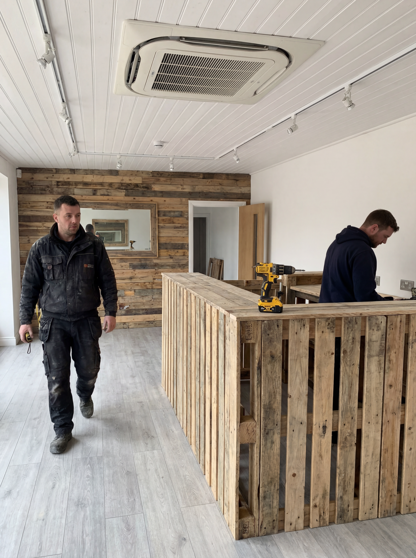 - Full Electrical Installation: : New consumer unit, retail-grade socket distribution, CCTV conduit, data cabling, external signage feed, and alarm first-fix all completed by our own electricians.